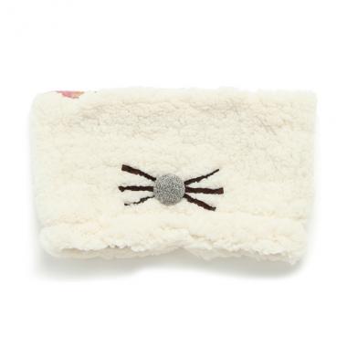 くるみボタンの鼻とおひげをつけた、アニマルフェイスのボアスヌードです。ちょっぴり遊び心のあるデザインで、キッズらしさをアピール♪ もこもこのボリューム感が、あたたかさもかわいさも一緒に叶えてくれます。裏面には個性的なニット地のブロック柄を採用しました。