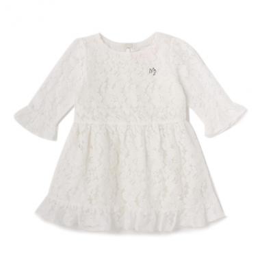 おしゃれをしてお出かけしたくなる、上品で華やかなレースワンピースです。袖口と裾のフリルでロマンティックムードをさらにアップ♪ 胸元にはきらめくロゴパーツをあしらいました。ちょっとしたお呼ばれやパーティーにもおすすめの一枚です。右側ポケットつき、バックファスナー開き。