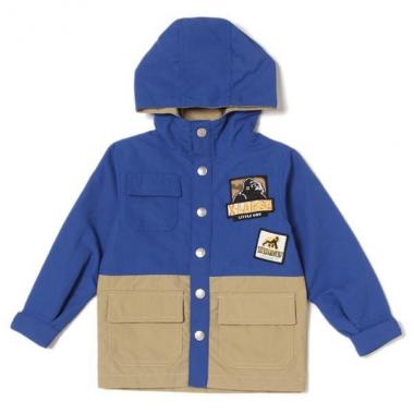 OGゴリラのワッペンが注目度抜群なマウンテンパーカーです。しっかりした強度のナイロンを使用したアウトドアにぴったりなアイテム♪ 面ファスナーでしっかりとカードできる袖口や、着脱も簡単なスナップボタンと機能性にもこだわりました。内側にはお名前を記入できるタグつきです。