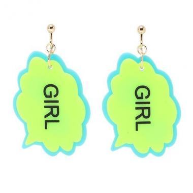 ポップなカラーリングが目にも鮮やかなイヤリングです。二層になった吹き出しがGIRLの文字を引き立てるデザイン♪ 元気いっぱいのアップヘアに合わせて、耳元で思いきり存在感をアピールするのがおすすめです。