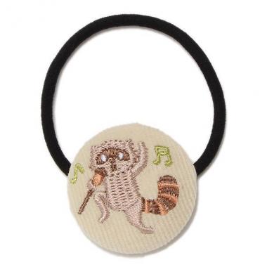ベロア調のくるみボタンに刺しゅうを添えたヘアポニーです。音楽に合わせてダンスをしているような姿がなんとも愛らしさ満点♪ アイボリーはタヌキ、エンジはうさぎとカラーによって刺しゅうのデザインが異なります。プレゼントにもおすすめなアイテムです。