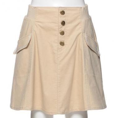 お上品な雰囲気ただようベロア調生地を使用したスカートです。程よく広がるシルエットで大人っぽくはきこなせるアイテム♪ フロントへ配したアンカーマークデザインのボタンや、ライン入りのフラップなど、マリンテイスト薫るディテールもポイントです。ウエストはアジャスターゴムでサイズ調整可能。