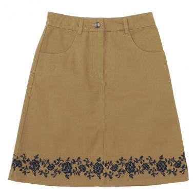 ほんのり起毛感のある生地を使用した、見た目にもあたたかみのあるスカートです。裾にはフラワーモチーフの刺しゅうをあしらいフェミニンなアクセントに。無地ベースのデザインなので、柄アイテムとの相性もバッチリです。ウエストはアジャスターゴムで調整可能。