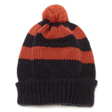 トップにポンポンモチーフをあしらった、愛らしいニット帽です。幅広のボーダー柄デザインで、存在感を発揮するアイテム♪ 被り口は折り返してフィット感を高めました。防寒対策としてはもちろん、コーディネートのポイントとして大活躍します。