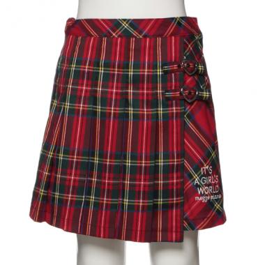 スタイルに英国ムードをプラスするチェック柄のラップ風スカパンです。ハートのバックルを用いたサイドベルトがキュートなアクセント♪ ウエストはアジャスターゴムで程良いサイズ感に調節できます。右側ポケットつきです。
