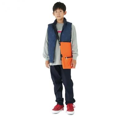クールな無地とポップな星柄、それぞれ違った雰囲気を楽しめるリバーシブルダウンベストです。高さのあるスタンドカラーが首周りをほっこりと包み込む一着。表裏どちらにもポケットがついており、ちょっとした小物をしまえるのがポイントです。※ボトムスは参考商品です