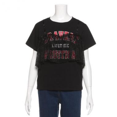 スイートなエッセンスをきかせたTシャツです。スポーティなロゴにビスチェ風デザインを加えて、カジュアルにもガーリーにもマッチする仕上がりに♪ コーディネートしやすいすっきりとしたシルエットです。※ボトムスは参考商品です