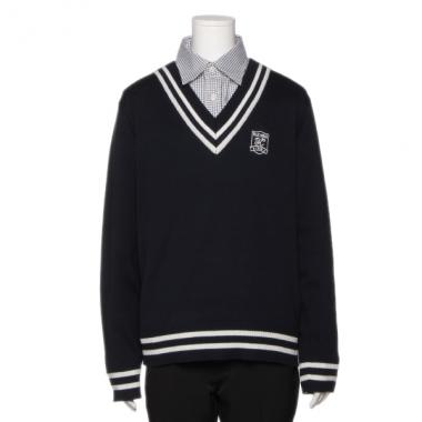 目の詰まったハイゲージの織り地でクリーンな印象のニットカーディガンです。二本ラインでさわやかなアクセントをプラスしました。制服のようなきちんと感があるので、お呼ばれなどかしこまった場面にもおすすめしたい一枚です。※インナー、ボトムは参考商品です
