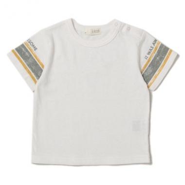 シンプルながらスポーティなアクセントのきいたTシャツです。掠れたようなプリントがクールな印象♪ コットン製で着心地も快適です。コーデしやすく、デイリーに活躍します。内側にお名前を記入できるタグつきです。※80、90サイズのみ肩開き