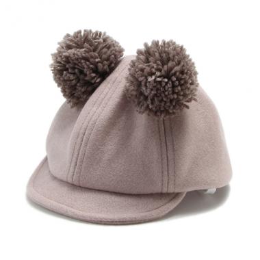 ちょっぴり毛羽立ったウール地にふさふさのポンポンをオンして、かぶったときのフォルムがとびきりキュートなキャップです。アクティブに動くお子さまでも安心のあご紐つき仕様。バックには面ファスナーをつけ、頭の大きさに合わせて微妙にサイズ調整ができるのもポイントです。