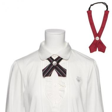 コーデやシーンに応じてアレンジを楽しめる、リバーシブルクロスタイです。ハンサムなストライプとエレガントなロゴ柄、それぞれ違った雰囲気が魅力♪ キラリと輝くメタルボタンが装いに華を添えます。卒服にもぴったりなアイテムです。※ブラウスは参考商品です