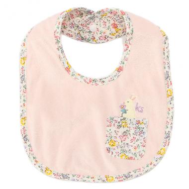 ミニポケットの上にかわいらしい動物刺しゅうをほどこしたスタイです。パイピングで縁取りしたメリハリデザインにも注目♪ 吸水性の抜群なパイル素材は赤ちゃんのお肌にもやさしく安心。首周りはスナップボタンで2段階まで調節可能です。