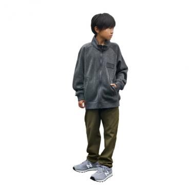 ニットのような表面感のフリース素材を使ったブルゾンです。裏側を起毛させているので、保温性も抜群。羽織りとしてはもちろん、アウターの中に着用することもできます。ファスナーの引き手とロゴワッペンには、リッチ感のあるフェイクレザーを採用しました。※ボトムスは参考商品です