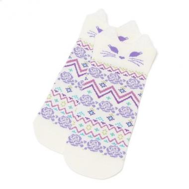 ネコフェイスニット柄クルーソックス【30%OFF】