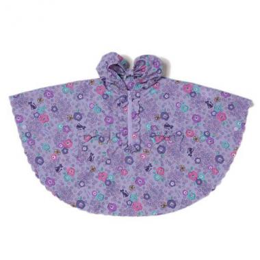 前立てフリルやリボンポケットで、女の子気分を盛り上げてくれるレインポンチョです。腕を通す手間がなく、フードはボタンで束ねるとリボンの形に変わり、後ろ姿も可愛らしく演出します。内側にはお名前を記入できるタグつきです。※巾着つき