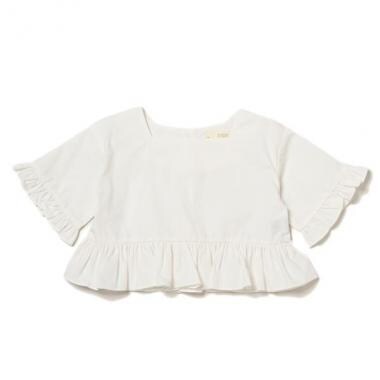 少しハリのある綿素材にフリルをつけ、女の子らしい着こなしを完成させるブラウスです。スクエアネックとクルーネックのうれしい2WAY仕様。ワンカラーでまとめてちょっぴり大人の雰囲気です。デニムと合わせてカジュアルとガーリーのミックススタイルもおすすめ。内側にはお名前を記入できるタグつきです。・モデルサイズ113cm・着用サイズ110cm