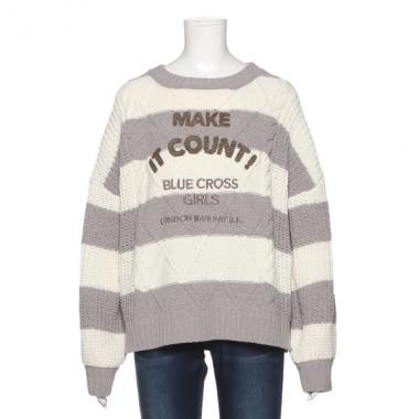 カジュアルな着こなしを楽しめるボーダーニットです。ぬくもり感あふれるケーブル編みをほどこしています。肩を落としたシルエットで細見え効果を発揮してくれるのもうれしいポイント♪ パンツ、スカートとどちらとも相性抜群です。※ボトムスは参考商品です