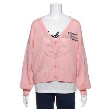 程よい透け感で、見せるレイヤードを楽しめるVネックニットカーディガンです。ボリューム感のある袖とショート丈の対比がおしゃれな雰囲気♪ ご家庭で洗える取扱いの手軽さも魅力のひとつ。さっと羽織れるカーディガンは一枚持っておくととても便利です。※インナーとボトムは参考商品です