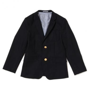 スタイルが華やぐ金ボタンつきのブレザージャケットです。プレッピームードあふれるルックスで、卒服スタイルとして活躍する1着。V字形にスッキリと開いたネックは、ネクタイなどの小物も良く映えます。ストライプ柄のさわやかな裏地使いも見逃せないポイント。・モデルサイズ160cm・着用サイズ150cm