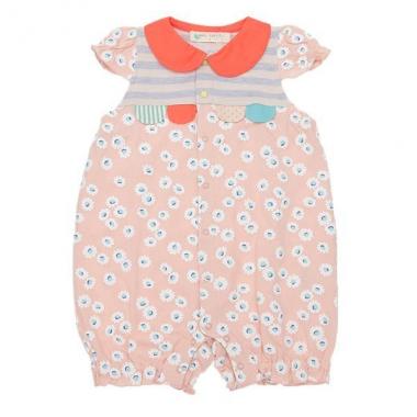 全面に花柄を取り入れたショートオールです。切り替え部分にはボーダーやストライプなど、お洒落な柄を取り入れました♪ ボタンがすべてスナップタイプなので、おむつ替えやお着替えが容易に行えます。おめかししたいお出かけシーンにお使いください。