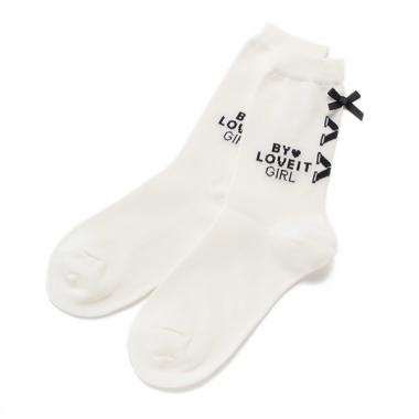 後ろ姿に甘い雰囲気を加えるレースアップデザインがおしゃれなクルーソックスです。サイドにはロゴを添えてブランドをしっかり印象づけます。薄手の生地ではき心地も◎。パンプスやスニーカーなど合わせるアイテムによって表情を変えてくれる一品です。
