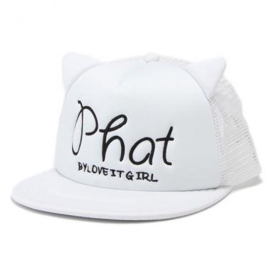 ネコ耳つきのラブリーなキャップです。丸みを帯びた愛らしい書体のロゴ刺しゅうが目を引くポイント♪ 本体後ろ側をメッシュ素材で切り替えており、通気性が良くさわやかなかぶり心地です。頭周りはバックのバンドでサイズ調節ができます。