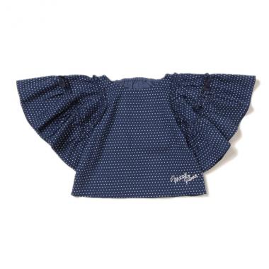 ふんわりとしたフレアスリーブがフェミニンなチュニックです。細かなピンドット柄がやさしく上品な雰囲気を演出します。衿ぐりはゴムによって大きく開くのでお着替えもスムーズ♪ 細身のボトムスと合わせてメリハリあるコーデがおすすめです。
