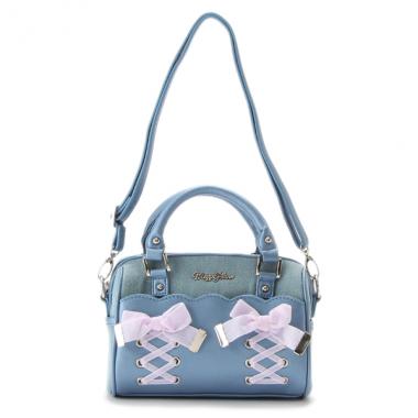 レースアップベロアリボンボストンバッグ【50%OFF】