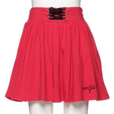 動くたびふわりと揺れるフレアシルエットが女の子らしい印象のスカパンです。ウエストのレースアップが目を引くポイント♪ 裾へロゴ刺しゅうをほどこして、ブランドらしいアクセントにしました。両側にポケットつきです。・モデルサイズ160cm・着用サイズ160cm