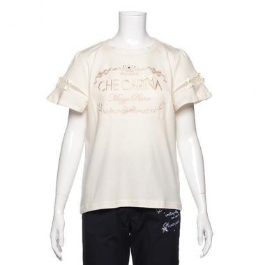 コーデのガーリームードを高めてくれるTシャツです。ロゴ刺しゅうやリボンがなんともキュート♪ きらめくビジューを添えてリッチ感を演出しています。袖の一部をシースルー生地で切り替えたことで、軽やかな印象に。タックインもバランスよくきまります。※ボトムスは参考商品です