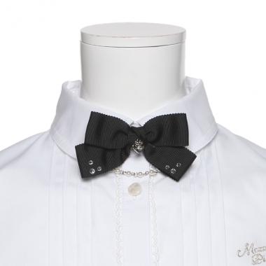 愛らしくも大人っぽい雰囲気がただよう、グログラン素材のリボンタイです。ストーンやパール調パーツが動くたびキラリと主張し、スタイルを華やかに演出するアイテム♪ モチーフ中央へロゴ入りのプレートをあしらい、ブランドらしいアクセントも盛り込んだアイテムです。※シャツは参考商品です