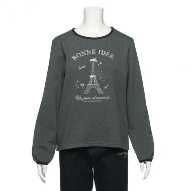 フロントに入ったエッフェル塔刺しゅうがフレンチムードを高める裏起毛Tシャツです。ネックや少しふくらみを持たせた袖口にはパイピングをほどこしてアクセントに♪ 裏起毛素材で薄手でもウォーム感ある着心地を実感できます。ボトムは参考商品です。※ジュニアサイズあり、品番:4984203