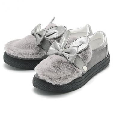 うさ耳とリボンが愛らしいスリッポンです。アッパー部分のフェイクファーはつけ外しができる2WAY仕様♪ 歩きやすく脱ぎはきも簡単なデザインで、カジュアルになりすぎないところもポイント。インソールにはキュートなブランドロゴがのぞき、見えないところにも凝ったアイテムです。